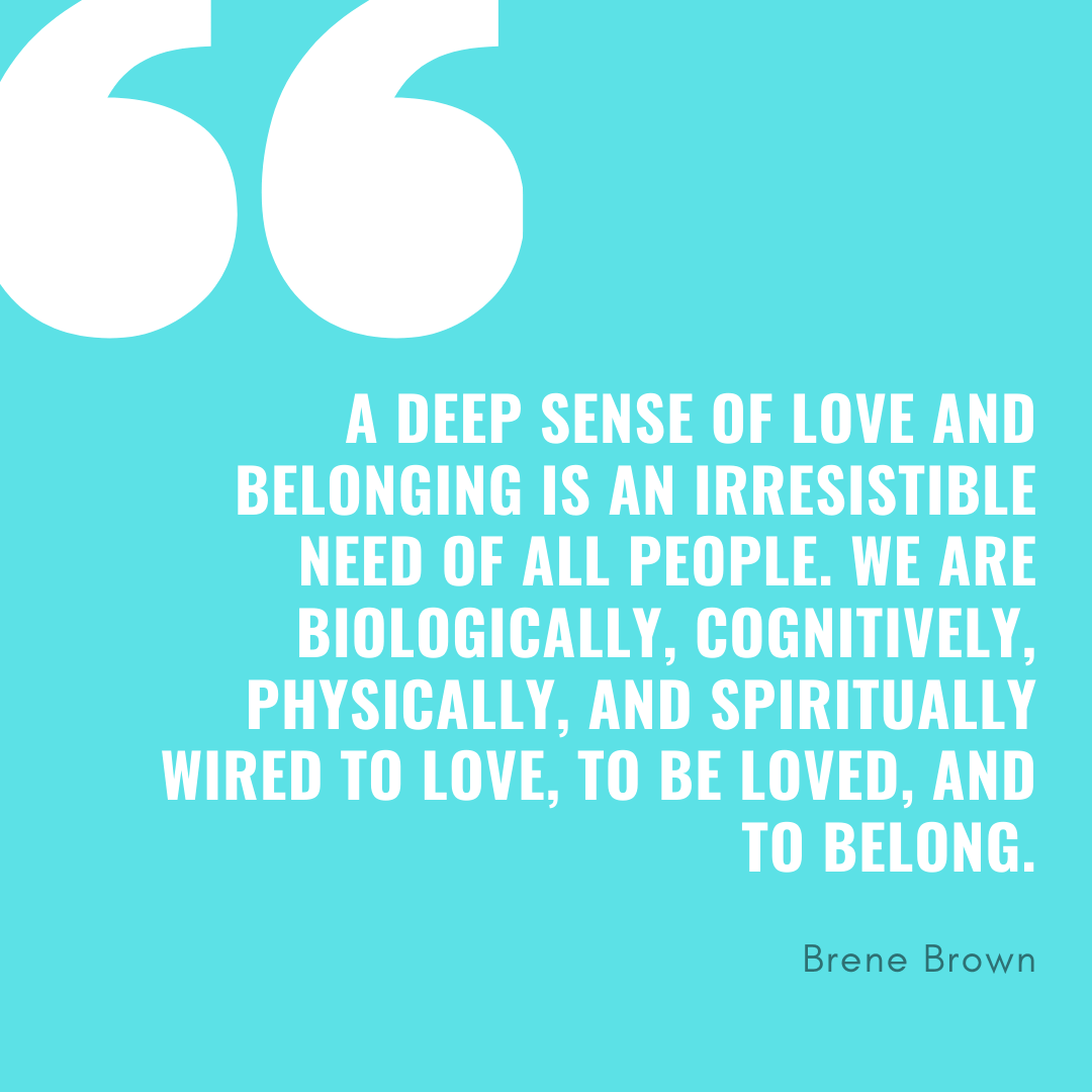 As Brene Brown said ‘A deep sense of love and belonging is an irresistible need of all people. We are biologically, cognitively, physically, and spiritually wired to love, to be loved, and to belong. It is part of who we are and how we function.