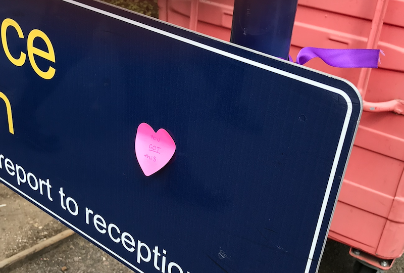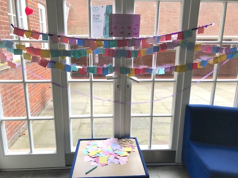 Around the school, interspersed with purple ribbons, were Post-It notes of encouragement. In the entrance hall, ribbons were filled with notes celebrating ways that the students had taken care of one another. And in Emily's Garden, her friends organised a cake stall where students could receive cake in exchange for doing something nice for someone else.