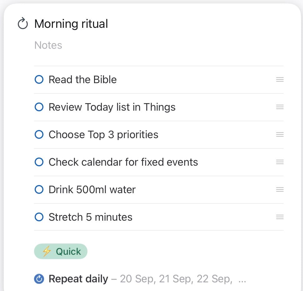 One thing that’s helping me? I’ve built a simple morning routine — just a few actions that help me start the day calm and focused. I tick them off each morning (which helps!), but I’ve also shared them with a friend.